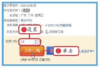 洽谈完毕后在页面中设置订购数量,然后单击“立即订购”按钮,最后按照提示填写订单信息,使用支付宝付款。收到货后,再支付货款。