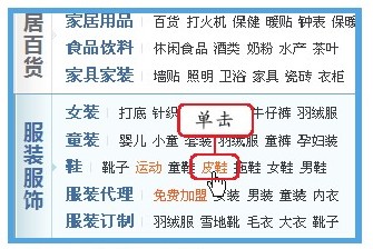 进入皮鞋首页,在顶部设置皮鞋的属性,例如依次选择现货、春季、真皮和头层牛皮。