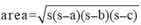 12 area=sqrt(s*(s-a)*(s-b)*(s-c));