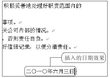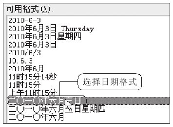 在“可用格式”列表框中选择要插入的日期格式,例如选择“二〇一〇年六月三日”格式,如图2-14所示。单击“确定”按钮返回文档中,此时在光标处插入了选择的日期格式,如图2-15所示。