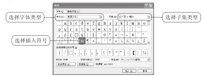 图 2-9 选择要插入的符号