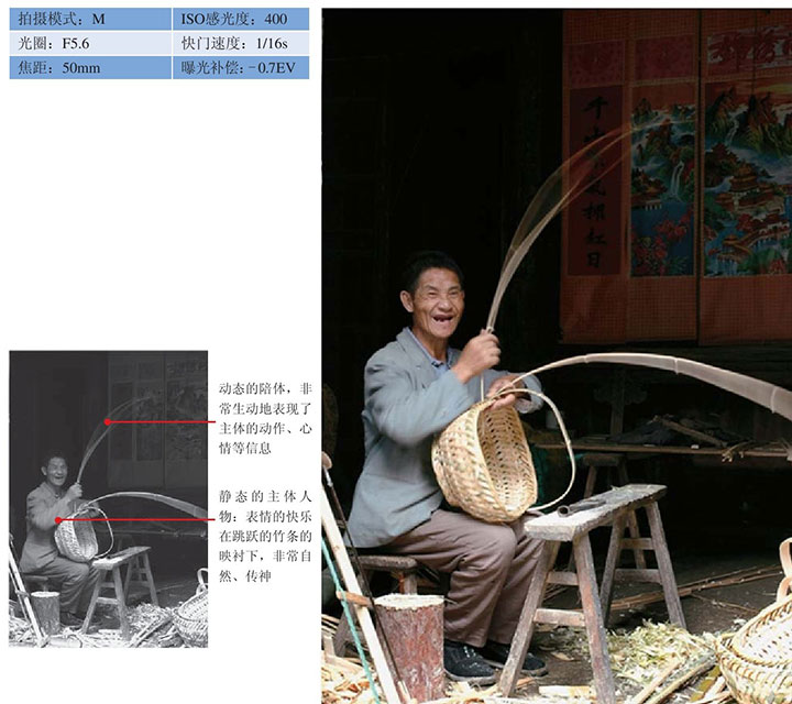 ● 要表现出跳跃藤条的动感模糊,快门速度不宜过快,可以利用快门优先或手动曝光的方式首先确定快门速度,然后根据现场环境条件决定其他曝光参数的组合。