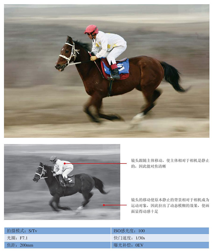 ● 快门速度不宜过快,否则无法拍出运动的模糊效果,也就无法表现出动感;而如果快门速度太慢,则无法有效地拍摄出相对静止的运动主体。