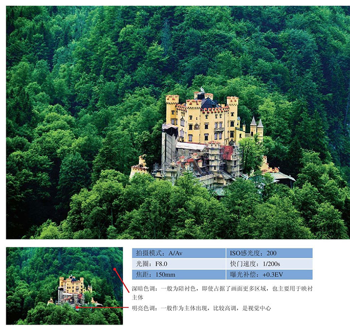 ● 画面中只有两种主要景物,应使用小光圈以确保较大的景深。
