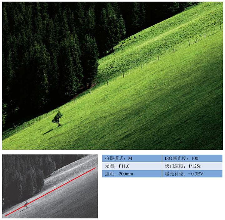 ● 要注意对角线两侧构图元素、色彩的平衡,即要使欣赏者在视觉体验上感觉这两侧是平衡的。
