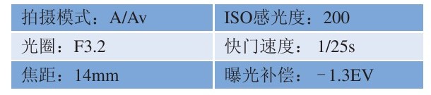 ● 因为没有太阳的关系,天空的色彩感稍弱,所以应该减少一定量的曝光补偿以防止天空曝光过度而变成灰蒙蒙一片。