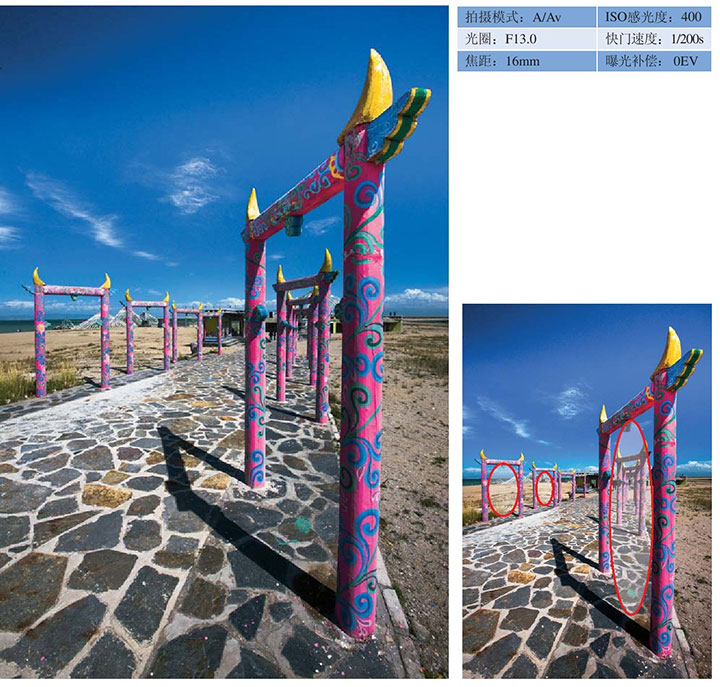 ● 因为焦距较短,只有16mm,所以即使使用了F4.0的大光圈,远处的景物也不会表现得过于模糊(这可以从决定景深的三要素的有关内容中找到答案)。