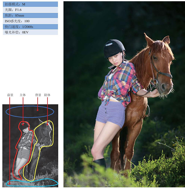 ● 构图时前景与后景中的元素都不易过于复杂,色彩也应该以单调为主。