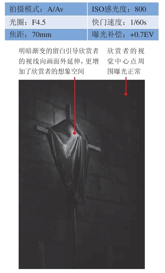 ● 采用中央重点测光方式对画面最亮处测光,同时兼顾主体周围的区域,而画面四周的区域则曝光不足,可以使欣赏者有充足的想象空间。