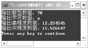 在实例代码中,分别定义了四个不同类型的变量,并进行了初始化。如果将整型变量score的值初始化为单精度数据“12.254545”,则计算机会将单精度数据小数点后的位数省略,这样就会影响程序的运行结果。注意 用户必须要根据变量的类型存储相同类型的数据。