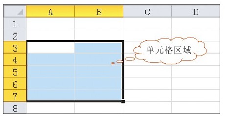 单元格是Excel编辑数据的最小单位,它是用列标和行号来进行标记的,如工作表中最左上角的单元格名称为A1,即表示该单元格位于A列1行。标识单元格区域,并不需要将每个单元格都列出来,只需将该区域左上角的单元格名称和右下角的单元格名称列出来,中间用英文中的冒号分隔即可,例如A3:B7单元格区域。如图1-3所示为选中的A1单元格,如图1-4所示为选中的A3:B7单元格区域。