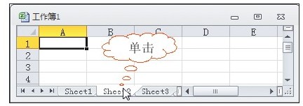 选择单个工作表:移动鼠标指针到工作表标签上,单击需要选择的工作表标签,即可选择该工作表,被选择的工作表标签以白底白字显示,如图1-9所示。