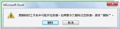 若删除的工作表中有数据,则系统自动弹出如图1-17所示的提示框,提示有数据存在是否永久删除,单击“删除”按钮即可删除该工作表,单击“取消”按钮则返回原工作表中。