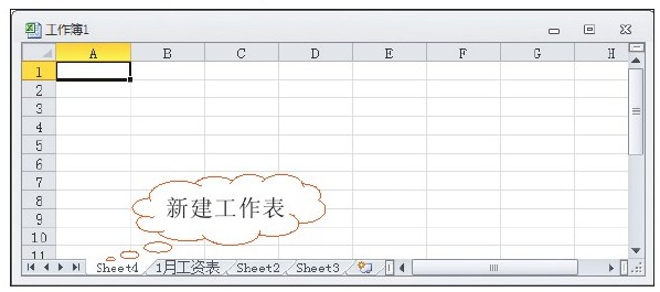 03 新建的工作表。返回工作簿中,此时在“1月工资表”前面新建了一个空白工作表Sheet4,如图1-15所示。