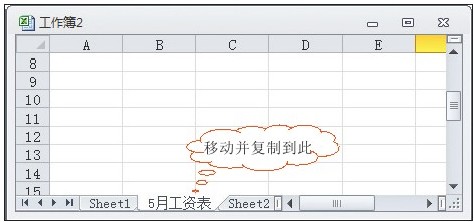04 移动并复制到其他工作簿。单击“确定”按钮,切换至“工作簿2”中,可以看到“5月工资表”移动并复制到该工作簿的Sheet1工作表之后,如图1-25所示。