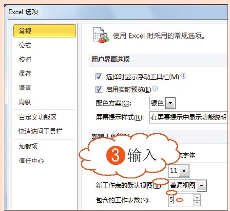 默认情况下,新建的工作簿中只包含了3个工作表:Sheet1、Sheet2、Sheet3,若用户创建的工作簿需要更多的工作表,此时可更改默认的工作表数目,使新建的工作簿一次包含更多的工作表。
