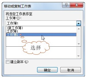 02 选择要移动或复制到的工作簿。弹出“移动或复制工作表”对话框,从“将选定工作表移至工作簿”下拉列表中选择要移至的工作簿,这里选择“工作簿2”,如图1-23所示。