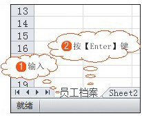 03 输入工作表新名称。1 重新输入工作表名称“员工档案”,2 输入完毕后按【Enter】键确认输入即可,如图1-28所示。