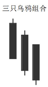 三连阴也叫三只乌鸦,是常见的K线组合,由3根阴线组成,阴线多为大阴线或中阴线,最后一根阴线往往是大阴线。三只乌鸦其实并不可怕,关键是看后续交易日能否修复形态,若形态很快修复说明多方转强,因为空头力量被耗尽。若形态不能修复说明空方依旧强势,应坚决清仓出局。形态修复以恢复到第一根阴线开盘价位置为标志。如果在股价已有较大跌幅后出现三只乌鸦,一般表示空方力量已经用尽;如果是在波段的高点转折和趋势中途出现三只乌鸦,表示股价会加速下跌;而如果是在波段循环低位和趋势下轨或形态学的底部出现三只乌鸦,代表空头力量已得到充分发泄,后市将会反弹回升(见图2-3中A区域)。