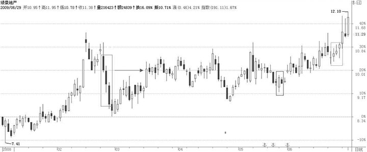 (5)K线的研究周期不同判断性质不同。同样的K线组合,月线的可信度最大,周线次之,然后才是日线。月线出现看涨的组合上涨的概率最大,周线上涨的组合可信度也很高。而日线骗线的概率较大。因此,在运用K线组合预测后市行情时,日线必须配合周线和月线使用效果才能更好。