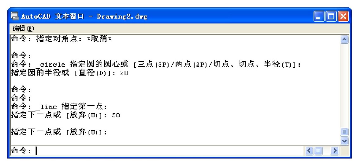 用户可以在命令窗口与对话框之间进行切换,特别是关闭命令窗口后可以通过对话框来输入命令和数据。在键盘上按下【F2】功能键可以实现命令窗口与对话框之间的切换,如图2-18所示。