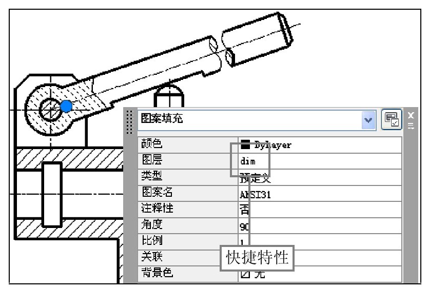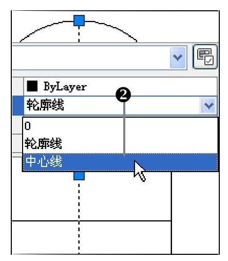 ②在“快捷特性”选项板中选择图层为“中心线”图层。