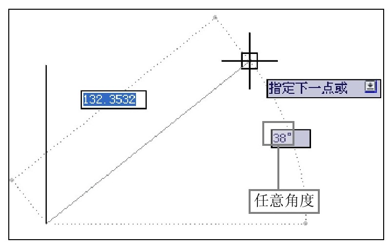 ,正交模式只能沿水平方向和竖直方向绘制图形,如图2-26所示,而关闭正交模式则可以以任意角度来绘制图形,如图2-27所示。正交模式可以在绘图图形之前定义,也可以在绘图的过程中定义。