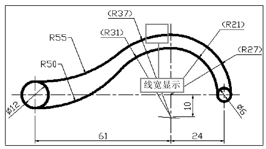 图形中的线段设置了线型宽度,在状态栏中单击“线宽显示”按钮可以查看线宽效果。当线型宽度大于0.3毫米时显示效果才明显,如图2-37所示。