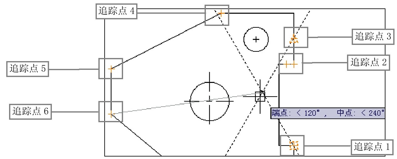 ,使用绘图工具绘制图形,指定点后移动鼠标可以追踪多个捕捉点,追踪的点将以高亮显示,如图2-34所示。