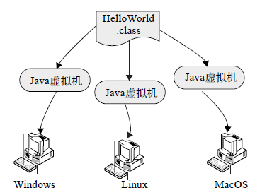 Java源程序被编译成字节码,字节码通过运行操作系统平台上的JVM来解释而获得执行,这样使用Java语言编写的程序不依赖于特定的平台,实现一次编写,随处运行。