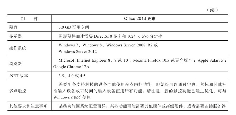 安装Excel 2013之前需要了解Office 2013的标准系统要求,即查看自己的电脑是否符合安装Office 2013的要求。安装Office 2013的标准系统要求如表1-1所示,即满足该条件和该条件以上的配置都可以安装。 H1DnDEylXfYgaDI/DcJBtpZF+9aw+ZSUQEsRJvw9aW4iEWdGNEgaLjDjs2Tes3mg