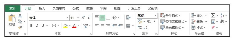 功能区由组和组中的命令组成。功能区的上面为选项卡,选项卡为在Excel中执行的一组核心任务。默认情况下,Excel 2013包括开始、插入、页面布局、公式、数据、审阅、视图7个选项卡,用户可通过“Excel选项”对话框的“自定义功能区”选项自定义更多的选项卡。每个选项卡包含很多组,每个组包含一组相关命令,以“开始”选项卡为例,包括字体、对齐方式、数字、样式、单元格、编辑等组,其中“字体”组又包含字体、字号等命令,如图1-17所示。 pEvT8Sa9ZDX+PCMEDp/fuwKlEHX0vHrL1MM/9eRsJVNQ2LCyGKFOCfdKsdcwISXn