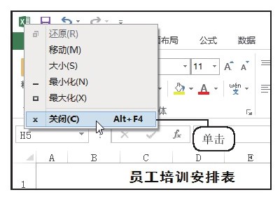 通过“关闭”命令退出:单击界面左上角的Excel图标,在弹出的快捷菜单中单击“关闭”命令,如图1-42所示。