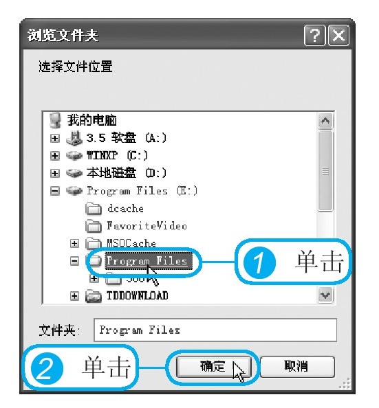 1 弹出“浏览文件夹”对话框,在“选择文件位置”列表框中单击程序要安装到的位置。