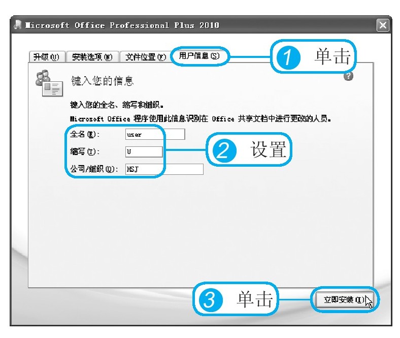 2 在“键入您的信息”区域内设置用户信息。