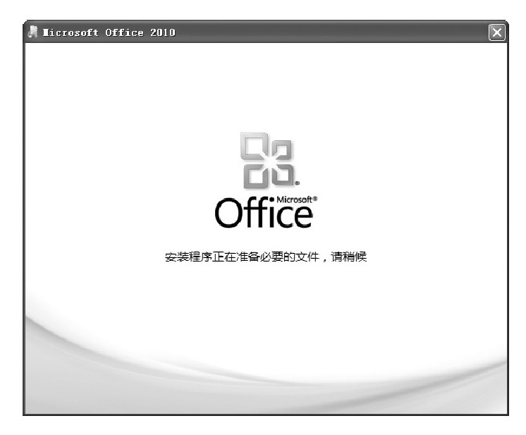 通过“我的电脑”窗口进入Office 2010安装程序所在目录,双击Office 2010安装程序图标,进入程序安装向导,界面中显示出“安装程序正在准备必要的文件,请稍候”字样,等待程序执行准备工作。