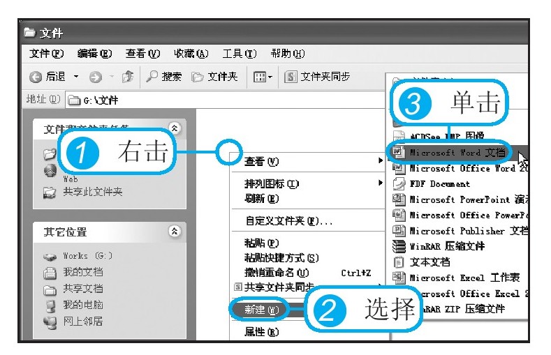 新建文档就是建立一个空白的文档,可通过多种方法完成该操作。本小节介绍3种比较常用的方法,分别为在电脑中新建、在文档中新建及新建模板文档。
