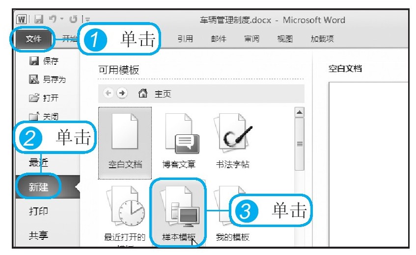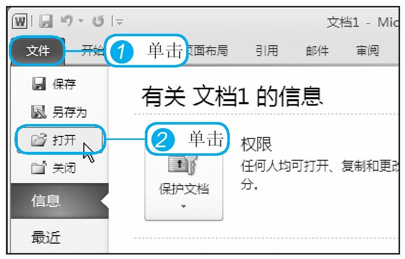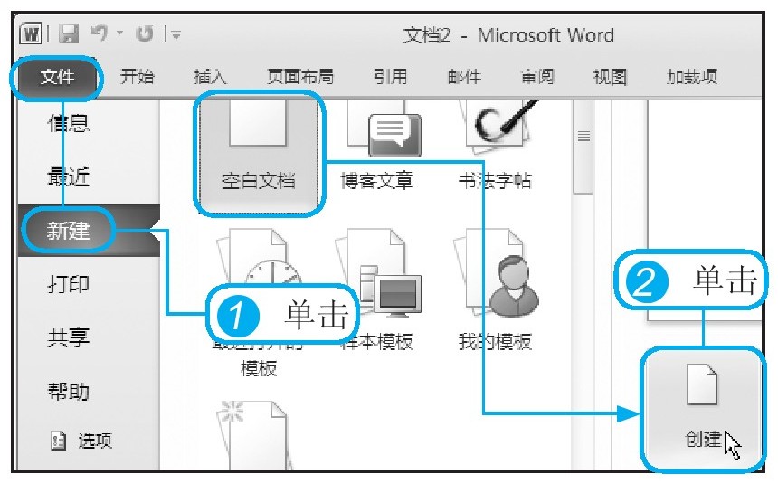 要对一个文档进行编辑,首先需要将其打开。新建与打开一个文档有多种方法。本节仍以Word 2010为例,介绍具体的操作步骤。