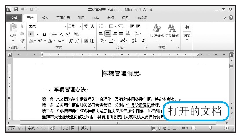 经过以上操作后,即可将所选择的文档打开,可以看到在弹出的新的Word操作界面中,显示了所打开文档的内容。