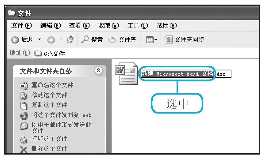 执行了Word 2010的文档创建命令后,在窗口中就会显示出创建的文件,按下鼠标左键拖动选中文件名称中除扩展名以外的文本。