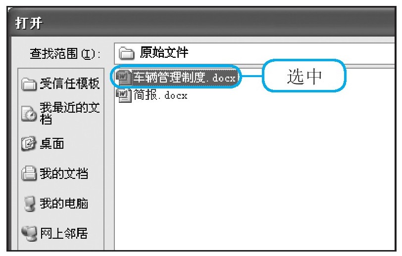 当弹出“打开”对话框后,进入要打开的文档所在路径,然后选中要打开的文档,单击“打开”按钮。