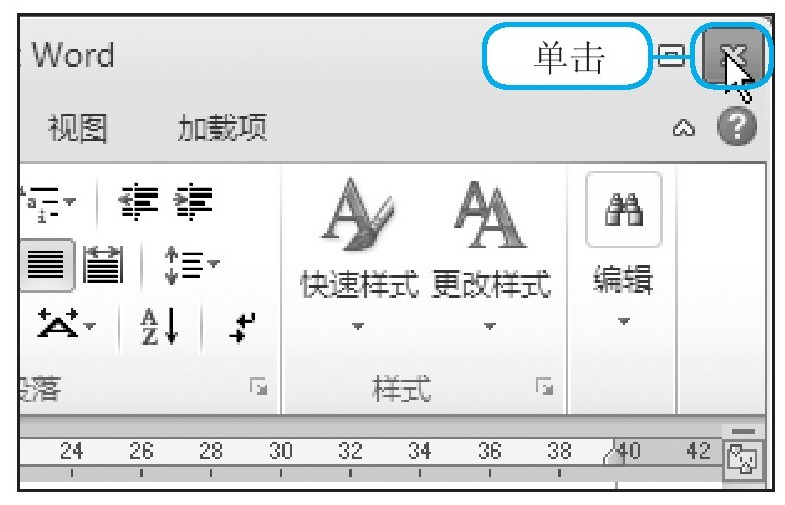 当不再需要编辑当前文档时,即可将其关闭。Office 2010中三个组件的关闭方法都是类似的,本小节以Word文档为例,介绍关闭文档的方法。