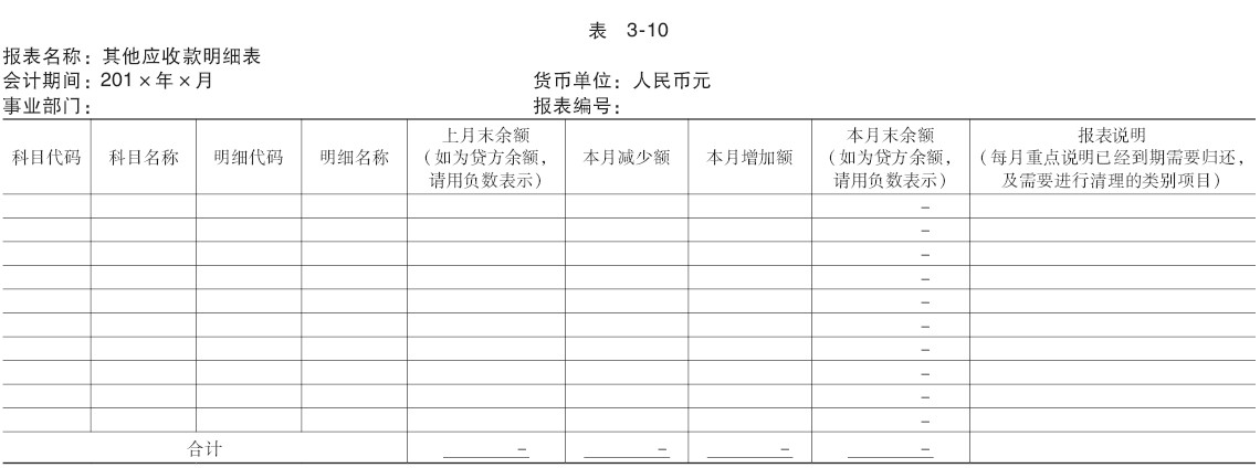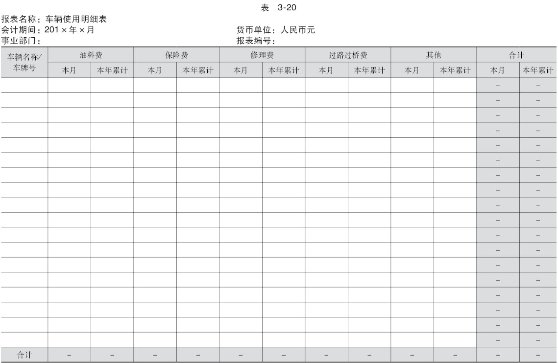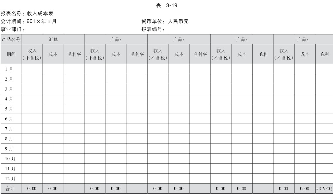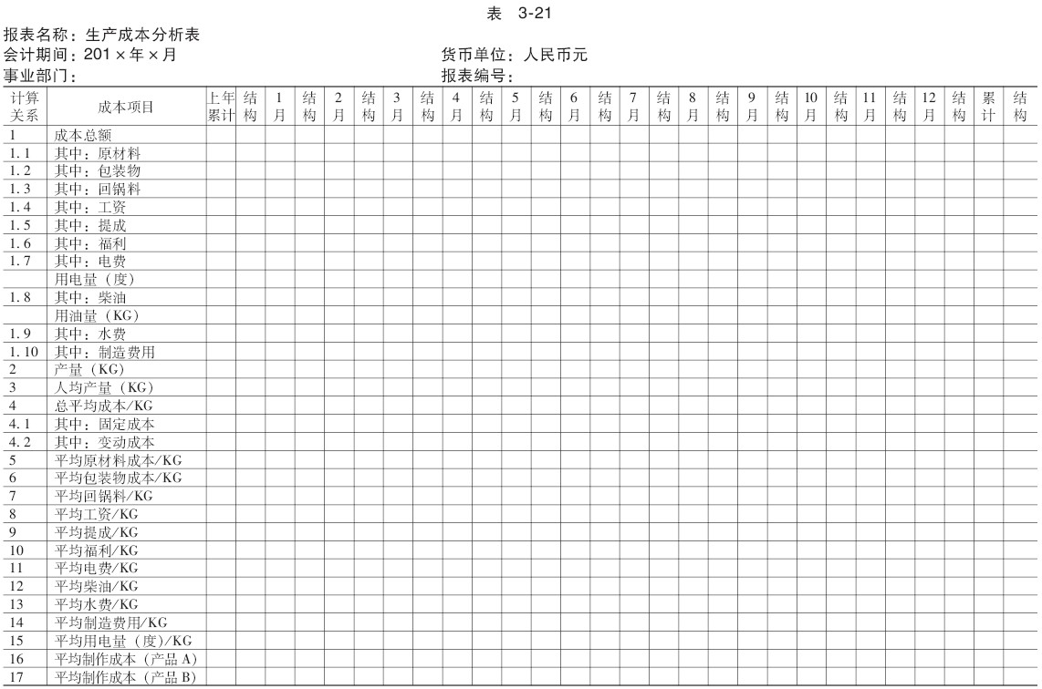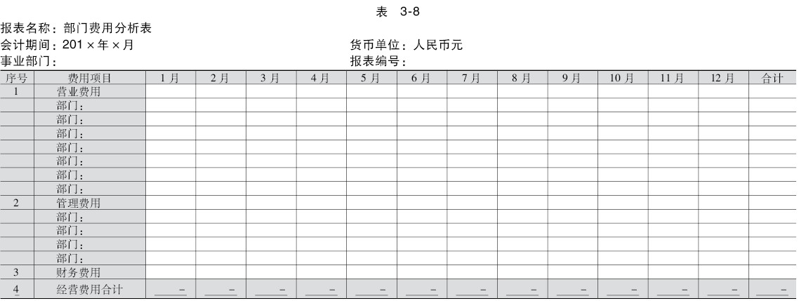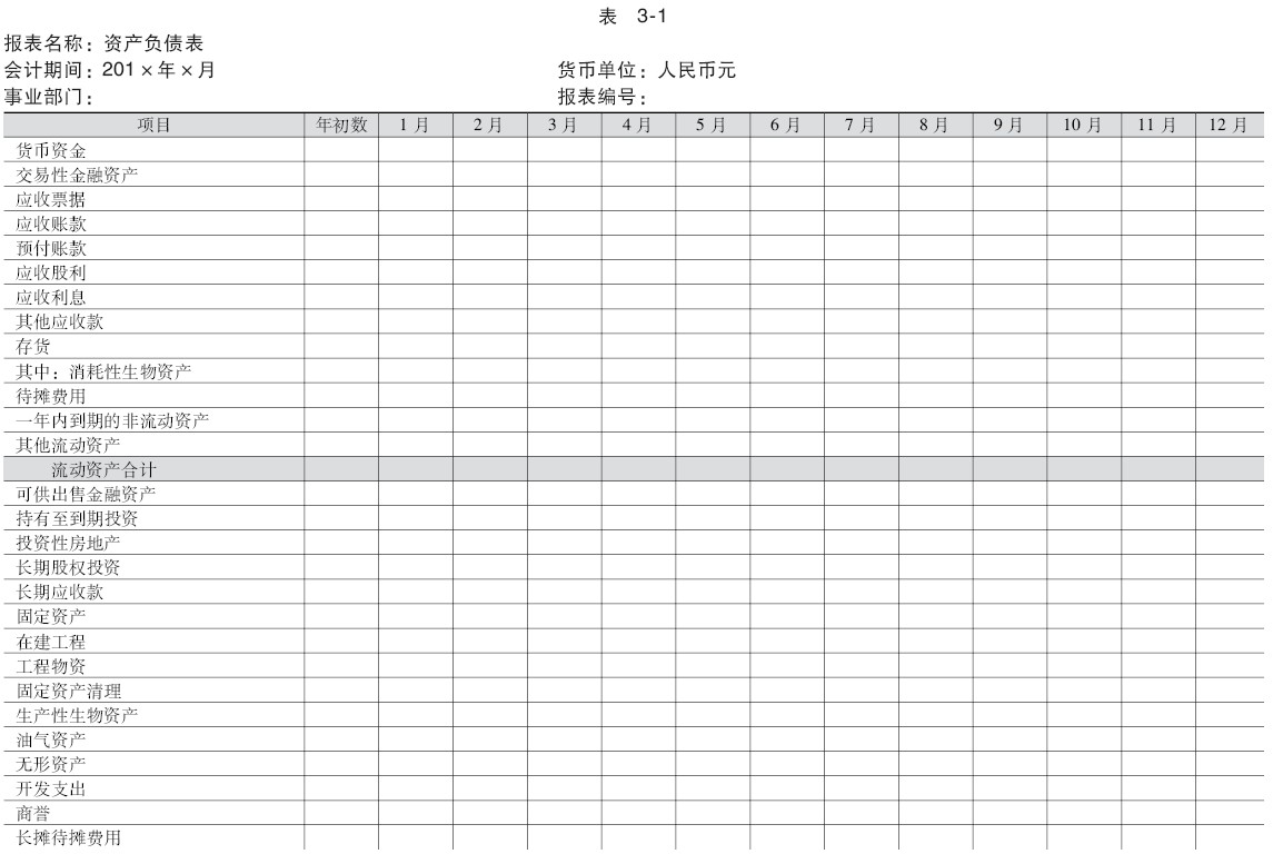 如果企业不是很大,上交的报表可能只有资产负债表、利润表、现金流量表或资金收支明细表、成本 / 费用项目明细表、往来明细报表。如果企业比较大,可能上交的报表还不止这些,而且对于报表的填报也提出了更高的要求。比如在报表上分析费用情况,分析账上情况可能还会延伸出更多的管理报表。下面是我给大家提供的一些常见的财务报表(见表 3-1 ~表 3-24 )。大家可以结合自己公司的实际情况进行修改,做到一个 Excel 表中,形成一套报表系统。