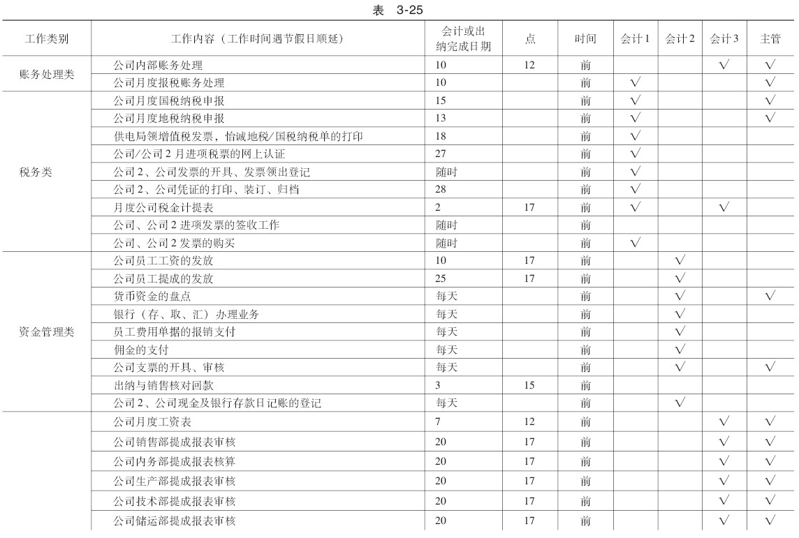 表 3-25 是一公司会计人员工作计划,大家可以了解一下会计的工作内容。