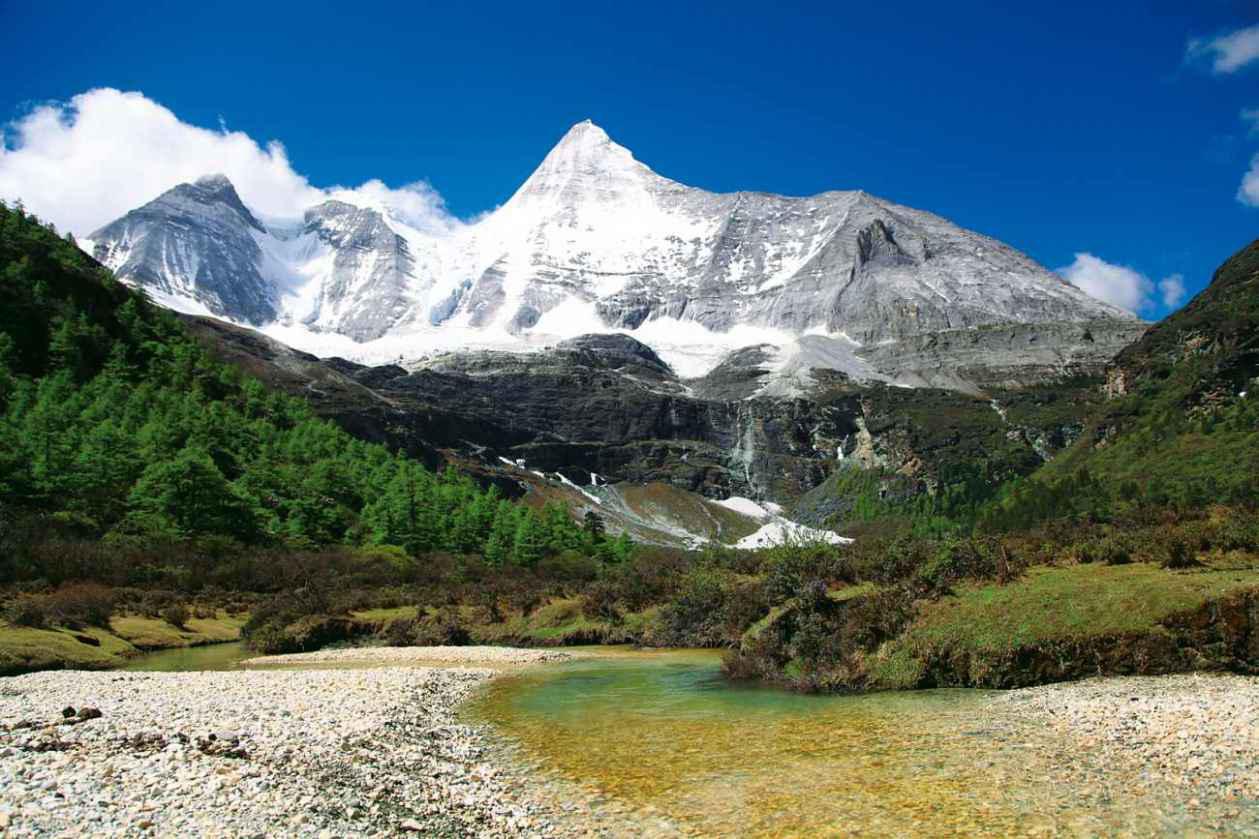 一条悠长奇绝的山路,穿越尘嚣,向天空延伸;一队队无比虔诚的朝拜者,不辞辛劳,艰难跋涉,只为双脚踏上这块圣洁之地,奉献身心地为之叩首。鲜花和绿草辉映的草场,潺潺流淌的小溪,五光十色、古朴幽深的海子。神峰戴冰雪冠冕,披白云哈达,卓然挺立,一尘不染,惊世骇俗的神韵让你不由得匍匐跪拜,将胸膛与大地贴近,把灵魂与天空相融。这就是亚丁,一个编织神话,更激发诗情画意的雪域圣地。