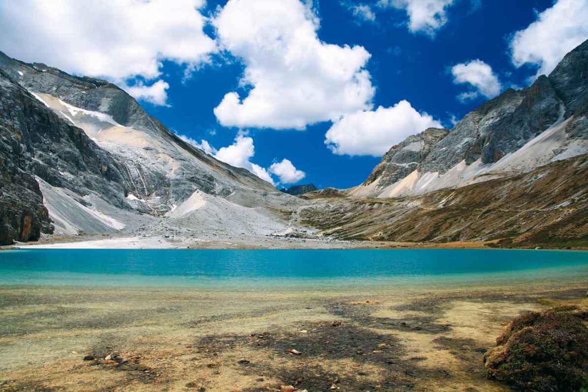 一到洛绒牛场,离央迈勇神山更近了,融化的雪在山谷间流淌,在阳光的照射下呈现出五颜六色。大家都被洛绒牛场的美给震慑住了。
