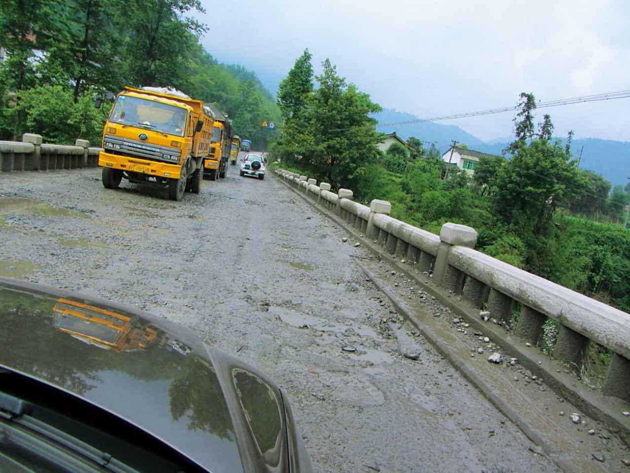 出雅安之后是水泥路,但已经支离破碎,有很多大坑,货车多,需要躲着走。过泸定后有十几公里在修路,大半段已修好,偶尔新路偶尔老路,两三次单边限行,等候时间十几二十分钟。过泸定往丹巴的211省道车少路差,一半搓衣板路,全程几乎都是落石路。