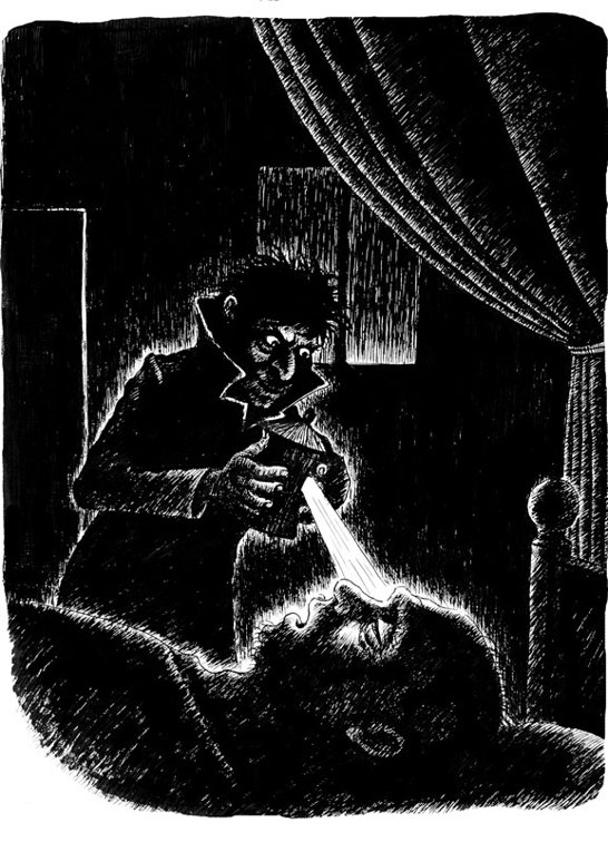 Now this is the point. You fancy me mad. Madmen know nothing. But you should have seen me . You should have seen how wisely I proceeded—with what caution—with what foresight—with what dissimulation I went to work! I was never kinder to the old man than during the whole week before I killed him. And every night, about midnight, I turned the latch of his door and opened it—oh, so gently! And then, when I had made an opening sufficient for my head, I put in a dark lantern, all closed, closed, so that no light shone out, and then I thrust in my head. Oh, you would have laughed to see how cunningly I thrust it in! I moved it slowly—very, very slowly, so that I might not disturb the old man's sleep. It took me an hour to place my whole head within the opening so far that I could see him as he lay upon his bed. Ha! —would a madman have been so wise as this? And then, when my head was well in the room, I undid the lantern cautiously—oh, so cautiously—cautiously (for the hinges creaked)—I undid it just so much that a single thin ray fell upon the vulture eye. And this I did for seven long nights—every night just at midnight—but I found the eye always closed; and so it was impossible to do the work; for it was not the old man who vexed me, but his Evil Eye. And every morning, when the day broke, I went boldly into the chamber, and spoke courageously to him, calling him by name in a hearty tone, and inquiring how he had passed the night. So you see he would have been a very profound old man, indeed, to suspect that every night, just at twelve, I looked in upon him while he slept.