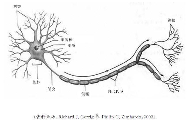 神经元(neuron),也称神经细胞(nerve cell),我们身体的信息系统是由几百亿个相互联系的神经元构成的。神经元是神经系统结构和功能的基本单位,其基本功能是感受刺激和传导神经冲动。尽管神经元形态各异,但是每个神经元都可以分为胞体和突起两部分(见图2-1)。