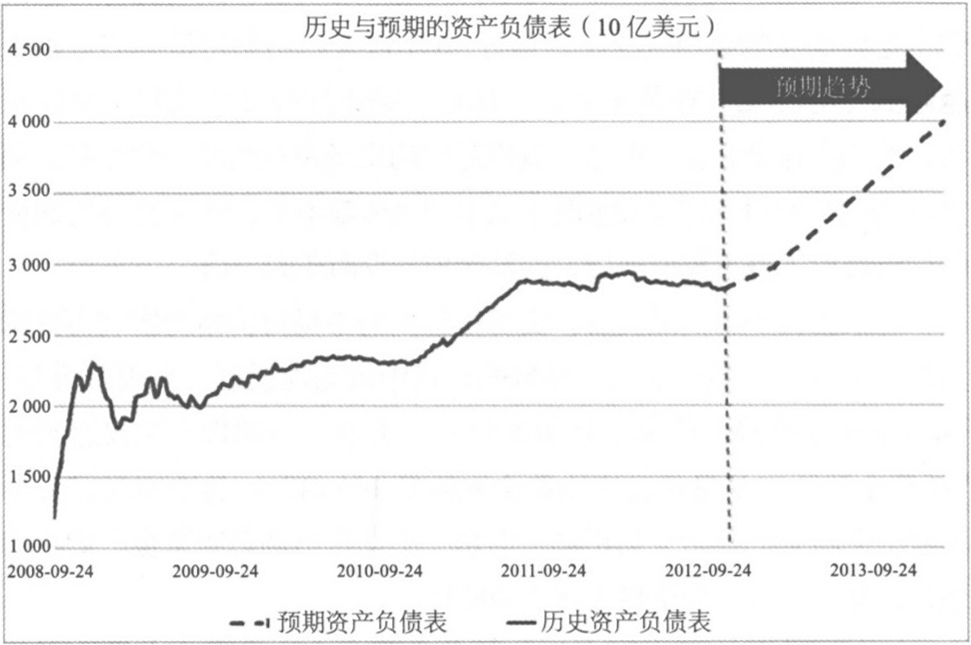 到2013年底,QE3将使美联储的资产负债表膨胀到4万亿美元
